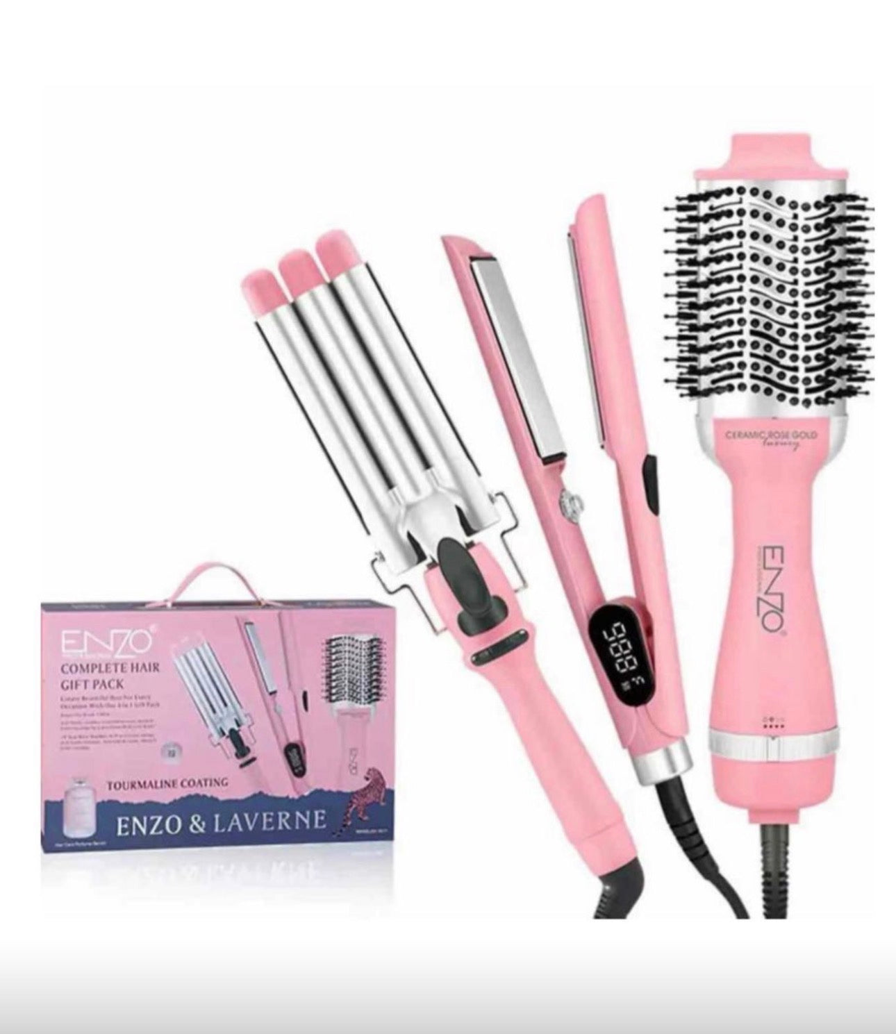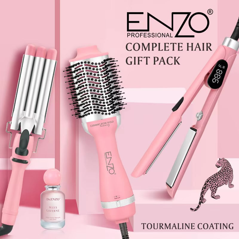 بكج سشوار ثلاثي فرشاة سشوار وفير ثلاثة رؤوس وسترتينر مع يروم هدية ماركة ENZO احصلي على تصفيف شعر متكامل بجودة احترافية مع طقم ENZO ثلاثي الوظائف. يتضمن فرشاة سشوار، مكواة فرد سيراميكية، ومكواة تجعيد، بالإضافة إلى سيروم عناية بالشعر هدية لتحصلي على شعر ناعم وصحي بمظهر مثالي…