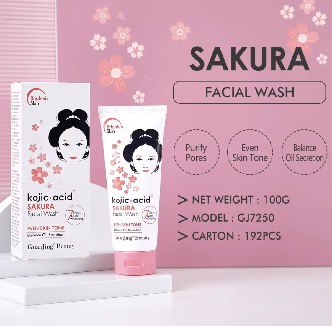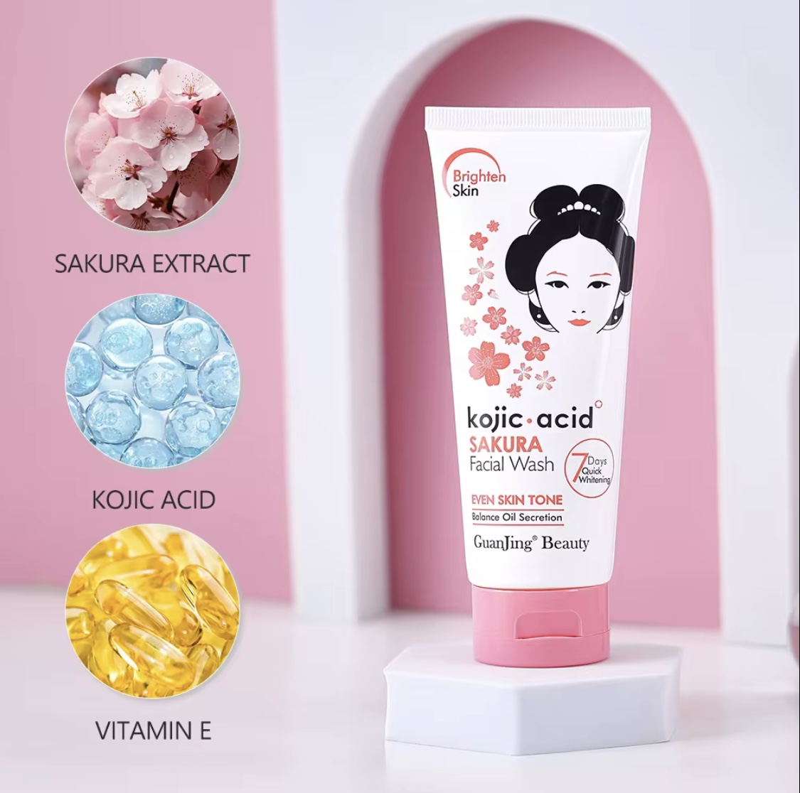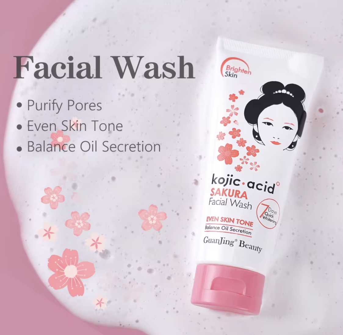 هو غسول الوجه Kojic Acid Sakura Facial Wash من علامة GuanJing Beauty.